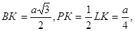 2. В треугольнике АВК через вершину В проведем прямую, перпендикулярную ребру АК двугранного угла ВАКС. Для этого подсчитаем стороны треугольника АВК. Получаем АВ=а