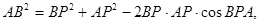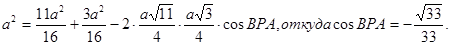 Теперь в треугольнике ВРА известны все стороны. По теореме косинусов получаем