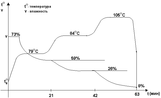 Параметры, которые должны поддерживаться в сушильной камеры с течением времени характеризуется графиком: