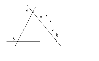 Из алгоритма быстрого построения следует, что в некоторых случая на каком-то шаге может оказаться, что не была удалена ни одна вершина, и все точки оказались по одну сторону от bh и eh (рис. 8). Если такое случается очень редко, то это не отразится на времени выполнения значительно, а если такое происходит на каждом шаге, то это приводит к оценке O (N 2 ). Для моей реализации этого алгоритма можно взять график ex и точку, расположенную на оси ординат над точкой O .