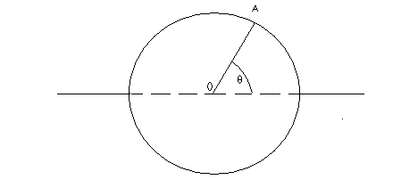 Пример 2. Вертикально поставленное симметричное колесо (см.Рисунок№1) приводится во вращение и затем останавливается вследствие трения. Рассматривается случайная величина θ –угол, который после остановки будет составлять с горизонтом фиксированный радиус колеса ОА. Очевидно величина θ распределена с равномерной плотностью на участке (0,2 π)