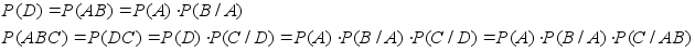 2. Событие C произведением A и B, если оно состоит из всех элементарных событий, входящих и в A, и в B. Произведением произвольного числа событий называется событие состоящее из элементарных событий, входящих во все Ai, i=1, ..., m.