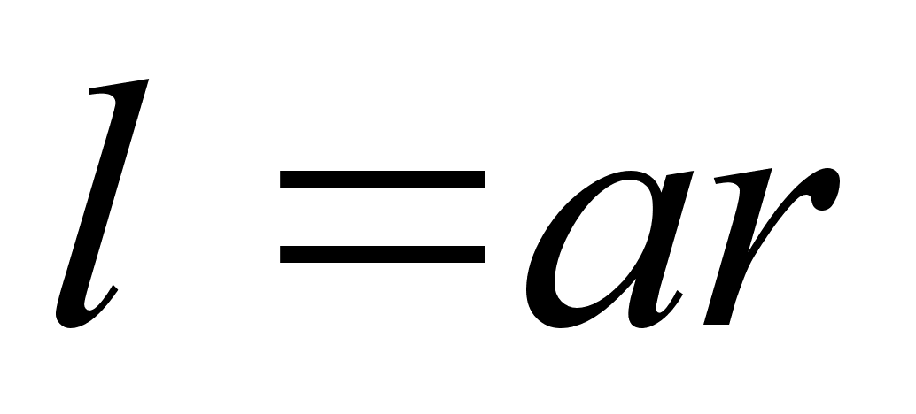 r – радиус, l – длина дуги,соответствующей центральному углу величиной а радиан.