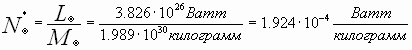 На примере нашего светила – Солнца, проделаем следующее: разделим численное значение светимости Солнца LÄ в ваттах на массу Солнца MÄ в килограммах, то есть найдём удельную мощность – N*Ä . Как видно, значения этой удельной мощности небольшие – бытовые электронагревательные приборы имеют намного более высокие значения её. Эту удельную мощность можно сопоставить с мощностью, которую выделяют гниющие листья в кучах мусора, собранного после осеннего листопада.