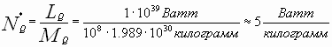 Для сравнения, приведём характеристики одного хорошо известного Квазара (3C 273): масса – МQ ~ 108 масс Солнца, светимость - LQ ~ 1039 Ватт. Так же как и в примере выше, найдём его удельную мощность.