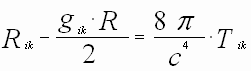 Rik, R – тензор Риччи (преобразованный тензор кривизны),