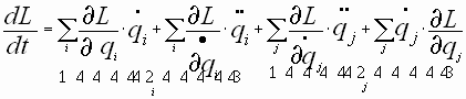 , где над первой скобкой идёт суммирование по i, а над второй – по j.Из уравнения движения