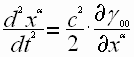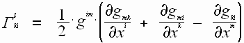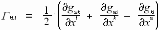 Тогда разделяя первые и вторые производные и произведя замену частных производных метрического тензора на символы Кристоффеля, (известно то, что в символах Кристоффеля