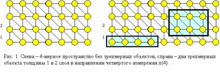 Обратимся к рис. 1. Пусть трехмерные слои пространства расположены горизонтально, а четвертое измерение направлено вертикально.