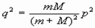 Классическая теория упругих столкновений двух частиц позволяет легко подсчитать наибольший импульс в направлении четвертого измерения (Ландау Л.Д., Лифшиц Е.М., Механика, ГИФМЛ, Москва, 1963). Пусть объект массы m налетает на неподвижный объект массы M со скоростью V (рис. 2). Тогда наибольший импульс q частицы М (а также m) в направлении четвертого измерения определяется выражением