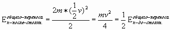 Но в кинетическую энергию скорость входит в квадрате, поэтому при увеличении массы в два раза и уменьшении в два раза скорости общего переноса кинетическая энергия общего переноса, т.е. та, которую несет результирующий импульс, уменьшилась вдвое.