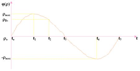 На данном графике: время (to - t5) – это период одного полного колебания Вселенной; (t1 – t2) – период расширения Вселенной до сегодняшнего дня; точка (t1, max) – тот момент, который многие ученые называют "большим взрывом", хотя он таковым совсем не является, а есть моментом максимального сжатия материи Вселенной; (t2 – t3) – период постепенного излучения всей потенциальной энергии частиц Вселенной до достижения "нулевой" плотности вещества (т.е., выравнивания величины потенциала поля внутри Вселенной и вне её) и переход всей потенциальной энергии в кинетическую с максимальной скоростью расширения Вселенной; (t3 – t4) – период торможения и образования анти-Вселенной с антивеществом до достижения максимума амплитуды отрицательного (по отношению к величине внешнего) потенциала поля и максимальной плотности сжатия антивещества; (t4 – t5) – период фактически ничем не отличающийся от нынешнего периода с ускоренным расширением анти-Вселенной и переходом антивещества в излучение и ростом кинетической энергии.