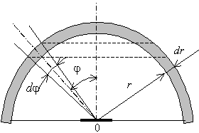 Теперь можно определить освещённость любой поверхности от всех звёзд Вселенной, находящихся с одной стороны от неё. Для начала выделим в бесконечном пространстве сферически-симметричный слой звёзд на расстоянии