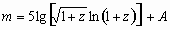 Правые части обеих вышеуказанных зависимостей приведены к одинаковому виду, при котором каждая из них состоит из суммы функции от z и некоторой константы. Поэтому естественно считать, что данные константы равны друг другу, т. е. что A=21,68, как это следует из наблюдений.