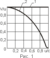 которое и будем далее использовать вместо соотношения (3). Согласно этому соотношению при увеличении истинной или классической скорости движения тела релятивистское время T сокращается по закону сокращения релятивистского пространства L, а релятивистская скорость изменяется согласно прямой 1 на рис. 1, т. е. совпадает с классической во всём скоростном диапазоне.