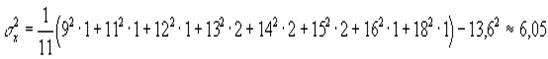 | Частоты ni | 0 | 1 | 0 | 1 | 1 | 2 | 2 | 2 | 1 | 0 | 1 | 0 |