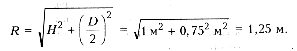 Из рисунка видно, что высота сегмента h = R – H = 0,25 м.