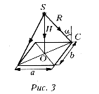 Из этой формулы видно, что освещенность максимальна в наиболее близкой к источнику точке стола и минимальна – в наиболее удаленной точке. На рис. 3 такими точками являются соответственно точка O и угловая точка стола, например точка C. По условию задачи SO = H, угол