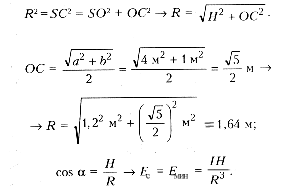 Радиус сферы определяем из прямоугольного треугольника OCD: