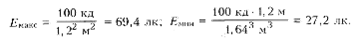 Подставляя числовые значения в формулы для нахождения максимальной и минимальной освещенностей, получаем: