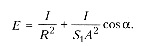 Если сбоку поместить плоское зеркало, то освещенность в точке A будет равна сумме освещенностей, создаваемых двумя источниками: реальным источником S и мнимым S1, имеющими одинаковую силу света. Следовательно,