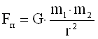 где: m1 , m2 – массы тел 1 и 2 соответственно, G=6.672 ∙10-11 Hм2 / кг2 – гравитационная постоянная, r – расстояние между телами.