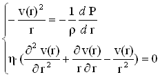 В цилиндрических координатах с учетом радиальной симметрии vr = vz = 0, v φ = v(r), P = P(r) уравнение запишется в виде системы: