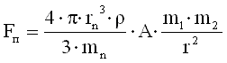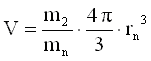 Делаем предположение № 6 – Эфир пронизывает все пространство, включая физические тела. Объем V в формуле (8) - это эффективный объем - объем элементарных частиц, из которых состоит тело 2. Все тела состоят из электронов, протонов и нейтронов. Радиус электрона много меньше радиуса протона и нейтрона, радиус последних примерно одинаков и составляет порядка rn ~ 1.2∙10-15 м. Массы протона и нейтрона также примерно одинаковы mn ~ 1.67∙10-27 кг (r n , m n – радиус и масса нуклона). Поэтому объем в формуле (8) равен: