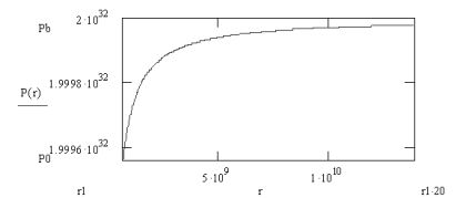 | Рис.2. Радиальное распределение давления эфира для Солнца. |