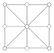 Рис. 2. Сетка 3х3. Пунктирные линии и вершины необязательны для LOD ммеша.