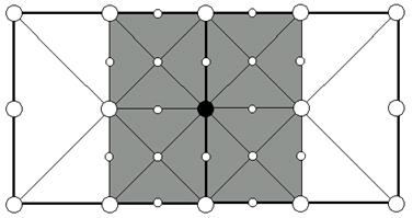 Рис. 8. Каждая реберная вершина имеет 4 соседних подквадрата, которые используют ее как угловую. Если любой из этих квадратов включен, то и вершина должна быть включена. К примеру, черная вершина должна быть включена если включен один из серых квадратов.