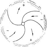 Следует сказать, что в результате осевого вращения Солнце продуцирует мощное магнитное поле, силовые линии которого «приклеиваются» в высокопроводящую плазму короны, вытягиваются в виде спирали далеко в межпланетное пространство (рис. II.7). В ходе солнечной активности структура секторного магнитного поля может менять свою форму и даже число секторов.