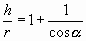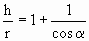 Отношение основной высоты равнобедренного треугольника к радиусу вписанной в него окружности равно алгебраической сумме единицы и величины, обратной по значению косинусу равных углов при основании.