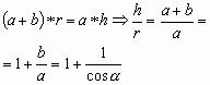 3.1. Если два равнобедренных треугольника построены на одной основной высоте и угол между боковыми сторонами одного равен углам при основании второго, то отношение соответствующих оснований равно разнице величины, обратной по значению косинусам равных углов при основании второго, и единице: