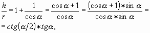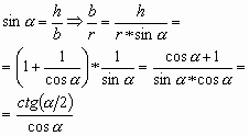 1.2. Отношение боковой стороны равнобедренного треугольника к радиусу вписанной в него окружности равно отношению котангенса половинного угла при основании к косинусу полного угла при основании: