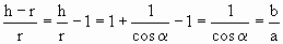 1.3. В равнобедренном треугольнике отношение разницы между основной высотой и радиусом вписанной окружности к величине последнего равно отношению боковой стороны к половине основания или величине, обратной значению косинуса угла при основании: