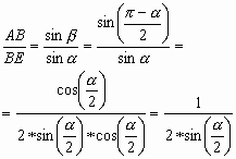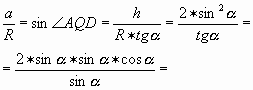 2.1. Отношение половины стороны основания равнобедренного треугольника к радиусу описанной вокруг него окружности равно синусу двойного угла при основании: