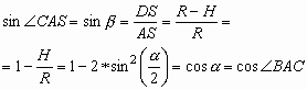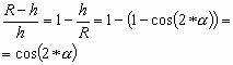 2.3 В равнобедренном треугольнике отношение разницы между радиусом описанной окружности и основной высотой к величине первого равно косинусу двойного угла при основании: