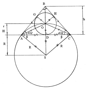 Равнобедренные ∆ АВС и ∆ АОС с общим основанием АС = 2 а, DO = r = H радиус вписанной окружности и высота равнобедренных ∆ АВС и ∆ AOC соответственно. ВАС = ВСА = , OAC = OCA =