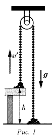 Задача 1. Однородная неупругая цепь длиной L и массой М перекинута через блок. Часть цепи лежит на столе высотой h, а часть на полу. Найти скорость равномерного движения звеньев цепи (рис. 1).