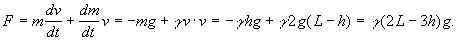 И, наконец, последнее замечание. В качестве тела переменной массы можно взять участок цепи, лежащей на столе. При таком выборе будем иметь: скорость v = 0, масса m = (L – h) и увеличивается за счет падающих на стол звеньев, их скорость