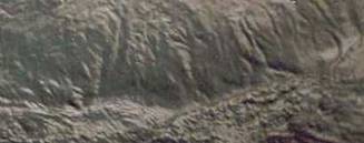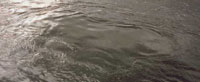 На рис. 2 представлена фотография поверхности реки Енисей в районе г.Красноярска - отчетливо видны зоны с гладкой зеркальной поверхностью, перемежающиеся областями нерегулярных волн. Как показывают наши наблюдения, гладкие участки поверхности возникают вследствие поступления из глубины конвекционных струй, несущих значительные объемы воды. Эти объемы затем растекаются по поверхности, встречают сопротивление окружающих слоев и образуют замкнутую границу, где жидкость закручивается, уходя вниз.
