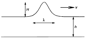 Вообще говоря, непонятно, почему в приведенную выше формулу для скорости волны не входит локальная глубина с учетом волнового движения. И действительно, более точные теории показывают, что скорость распространения волны зависит от локальной глубины. Но это означает, что гребень волны должен двигаться быстрее ее впадины и, следовательно, профиль волны будет искажаться: его передний фронт будет становиться все более крутым и в конце концов волна должна опрокинуться (каждый, кто купался в море, знает, как обрушиваются волны вблизи берега).