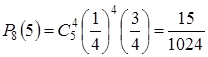 В приведенных выше обозначениях n=8; p=1/4; q=3/4; x=5. Искомую вероятность вычисляем по формуле Бернулли: