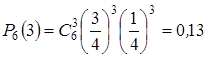 Решение. Для того, чтобы акции вернулись за 6 дней к своей первоначальной цене, нужно, чтобы за это время они 3 раза поднялись в цене и три раза опустились в цене. Искомая вероятность рассчитывается по формуле Бернулли