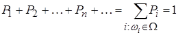 Каждому элементарному исходу wi пространства W соответствует некоторая неотрицательная числовая характеристика Pi шансов его появления, называемая вероятностью исхода w i , причем