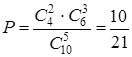 Пример. Из набора, содержащего 10 одинаковых на вид электроламп, среди которых 4 бракованных, случайным образом выбирается 5 ламп. Какова вероятность, что среди выбранных ламп будут 2 бракованные?