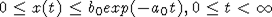 или при достаточно малых ненулевых элементах матрицы B. Если в условиях теоремы 3 D = Rm+, то экспоненциальная оценка на решение x(t) справедлива при любом начальном значении x(0). Если же D = D0, то эта оценка выполняется для x(0), лежащих в некоторой окрестности точки x = 0. В обоих случаях конкретный вид начального распределения особей по возрасту