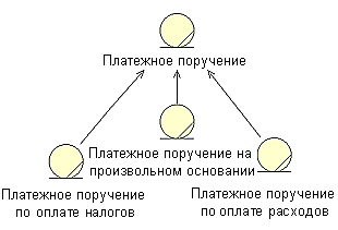 Класс Вид документа, объединяет комплекс документов, реализующих конкретную бизнес-функцию, например, обработку платежного поручения. Указанная бизнес-функция реализуется классами типа Вариант документа с именами: “Платежное поручение по оплате налогов”, “Платежное поручение на произвольном основании”, “Платежное поручение по оплате расходов”. Сама функция задается именованным классом Вид документа с именем “Платежное поручение”. Диаграмма класса имеет следующую структуру: