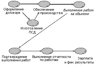 Этап оформления договора (рис. 3) описывает, в основном, процедуру согласования текста договора и приложений. В согласовании принимают участие практически все службы организации. Процедуры согласования выполняются над электронным образом документа через соответствующие АРМы. Обеспечение производства - один из самых сложных процессов деятельности организации. Структура его раскрывается ниже. Прецедент “Выполнение работ на объекте” сложен с точки зрения управления проектом. Для его описания подключаются средства вида Microsoft Project. Процесс изготовления проектно-сметной документации (ПСД) выполняется в том случае, когда указано в договоре или требуется уточнение ПСД. Этап подтверждения выполненных работ содержит процедуры непосредственно подтверждения работ и согласования реестра. Этап “Отчетность по выполненным работам” состоит из процедуры списания материалов и оборудования и процедуры внесения выполненной работы в реестр. Конечным является этап подведения финансовых итогов. Наиболее сложной бизнес-функцией здесь является процедура начисления заработной платы работникам участков по результатам выполненной работы.